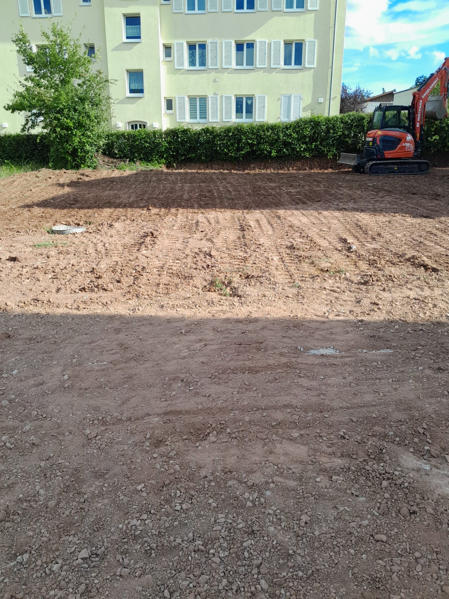 In Schwieberdingen wurde eine bestehende, in die Jahre gekommene Grünfläche vollständig neu strukturiert. Ziel war eine pflegeleichte, moderne Gartenfläche mit klaren Nutzungsbereichen.