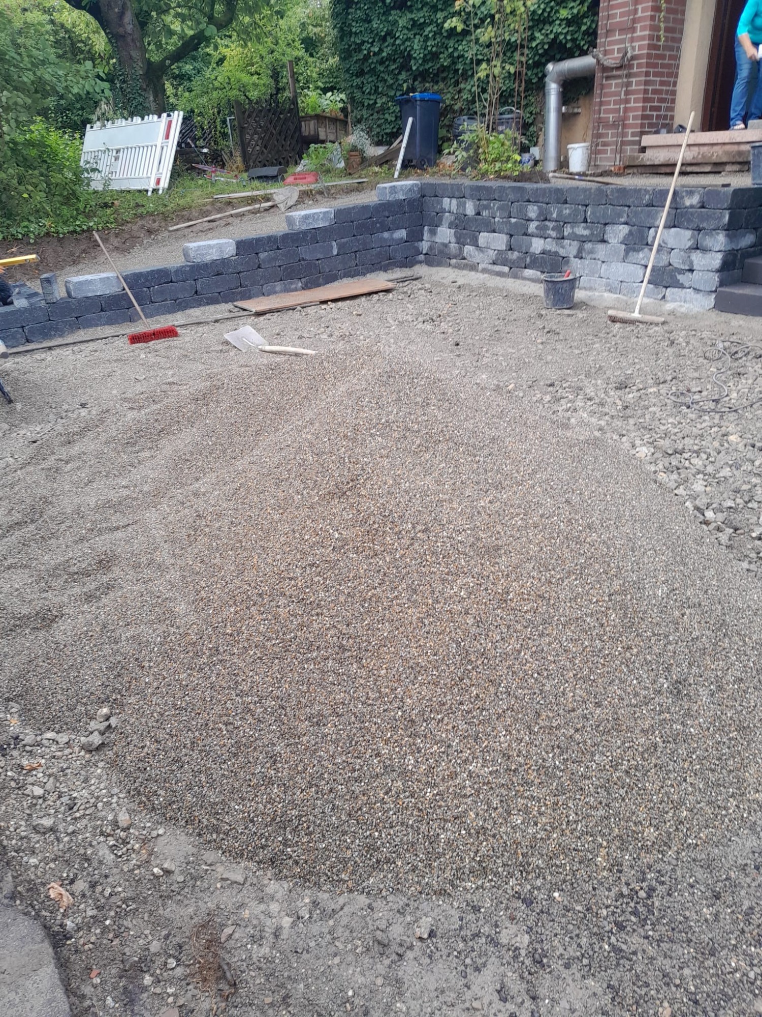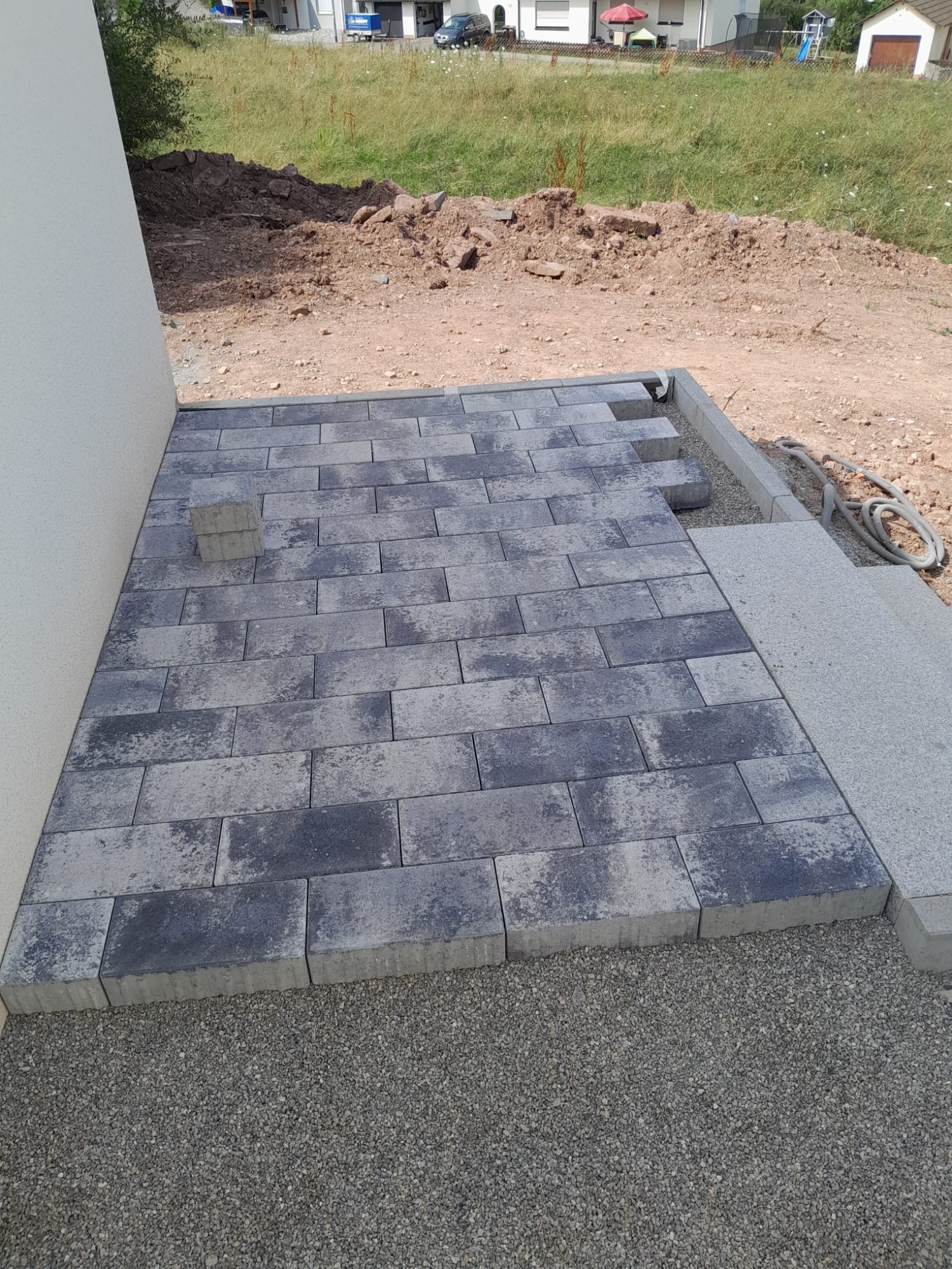 Nach umfangreichen Erdarbeiten und dem fachgerechten Aufbau des Untergrunds wurden sämtliche Pflasterflächen, Terrassenbereiche und Gehwege präzise ausgeführt.