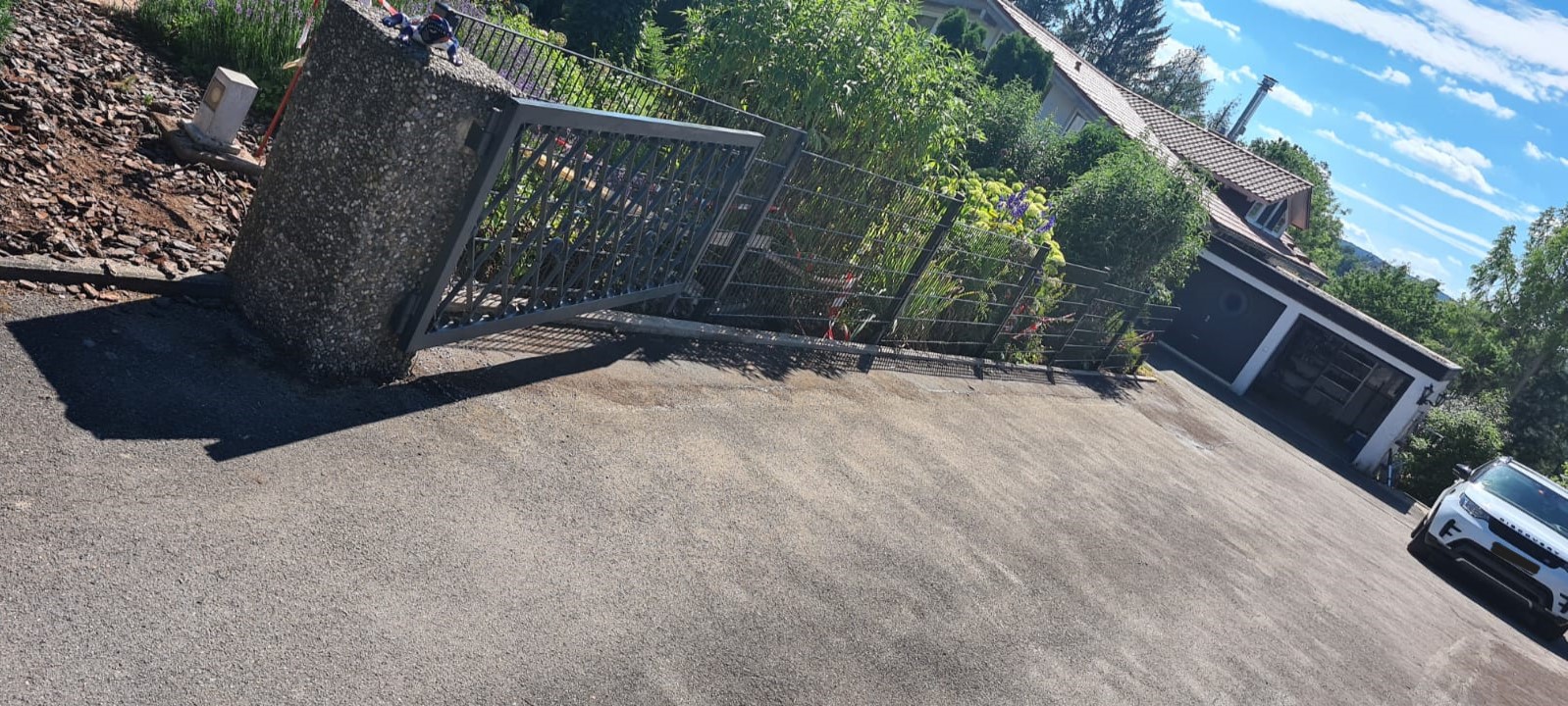 Einfahrt Rückbau und neu Asphaltierung, Doppelstabmattenzäune